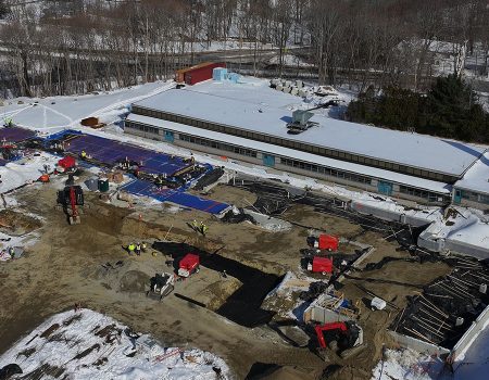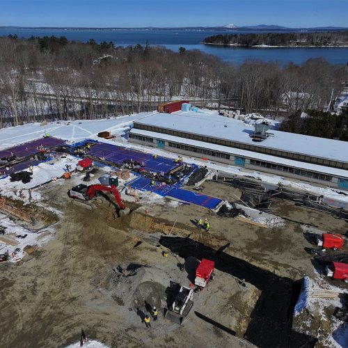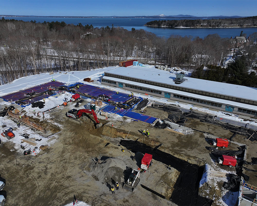Sargent crews completed the initial, challenging site work for the new $58 million PreK-8th grade school in Bar Harbor, Maine, which is being built between the existing, operating Emerson and Conners schools to replace them. Key difficulties included working in an extremely tight space, performing intricate blasting to remove ledge, and managing a two-month permitting delay that shifted concrete foundation placement to winter, as well as exporting 50,000 cubic yards of material. After beginning in September 2024 and completing the foundations and underground infrastructure by mid-June, the Sargent team temporarily demobilized for the school’s vertical construction, with plans to return in the summer of 2026 to facilitate the simultaneous operation of the three schools and then in 2027 to demolish the old buildings and safely remove the remaining on-site ledge.