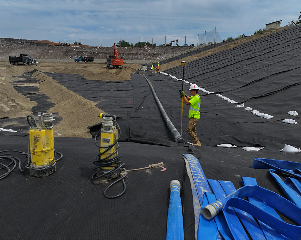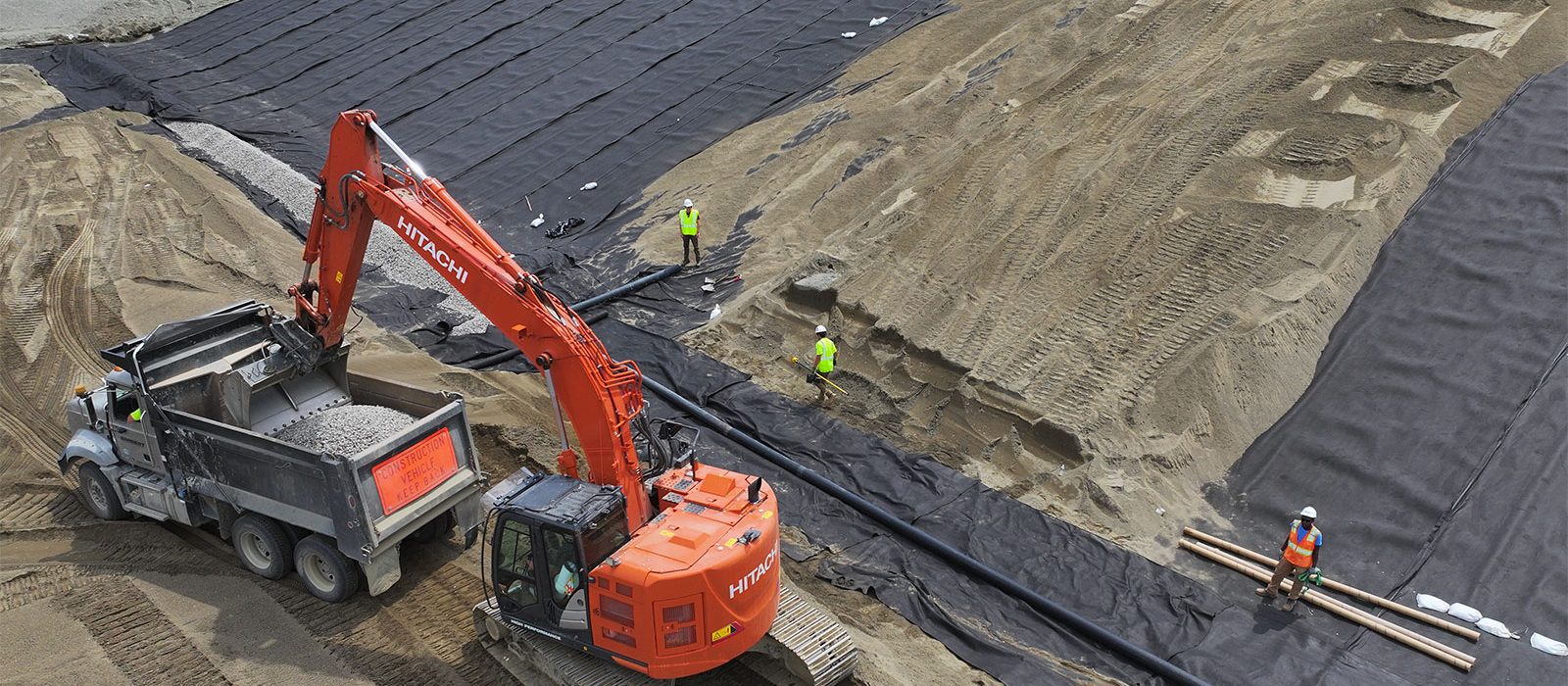 Sargent crews are engaged in multiple, coordinated projects at the active Crossroads Waste Management Landfill in Norridgewock, Maine, a site where they have worked for three decades. The primary efforts include excavating for two new treatment system buildings (one for PFAs and one for biosolids), building the new 4-acre Cell 14B-1, capping an older 10-acre cell (Phase 8), and prepping the new Cell 14B-2. Crucially, the new biosolids processing facility, which will be owned and operated by a Waste Management subsidiary, is designed to significantly reduce the volume of wastewater sludge from 200 wet tons to 50 dry tons daily using a low-temperature air-drying process powered by the landfill’s existing gas-to-energy engines, thus preserving landfill capacity. This extensive construction is being executed while maintaining continuous waste operations, requiring close coordination between Sargent’s and Waste Management’s teams.