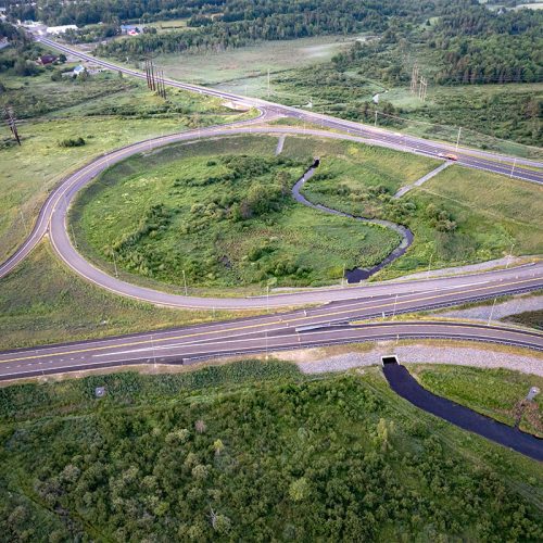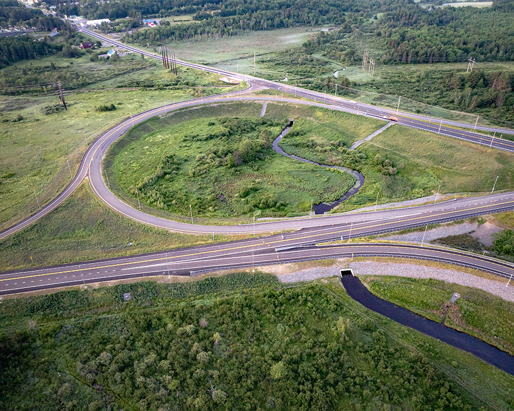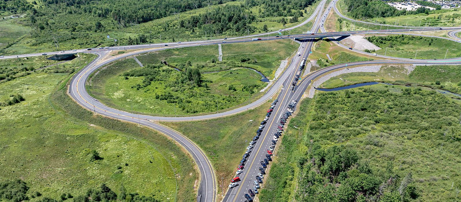 The $85 million Brewer-Holden-Eddington I-395 Route 9 Connector project, Sargent’s largest to date for the Maine Department of Transportation, was completed on time in late June 2025 after 3 1/2 years of work, opening a new 6-mile, controlled-access roadway linking Interstate 395 with State Route 9 (the Airline). Designed to improve traffic flow, enhance safety, and better serve the regional economy by shifting a major highway route out of downtown Bangor and Brewer, the project involved constructing five bridges and installing seven large box culverts, and required extensive civil work including the use of 70,000 cubic yards of foamed glass lightweight fill and over 850,000 vertical feet of wick drains in saturated areas to ensure a stable platform. The new connector, now officially part of Route 9, is expected to significantly reduce heavy truck traffic on Route 46 and benefit travelers between Calais and the interstate, culminating a process that began with a preliminary engineering study in 1998.