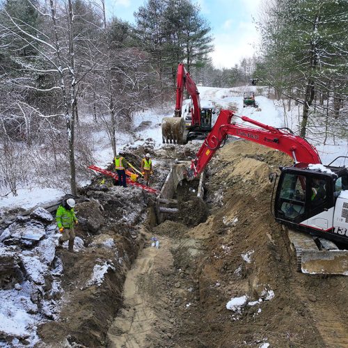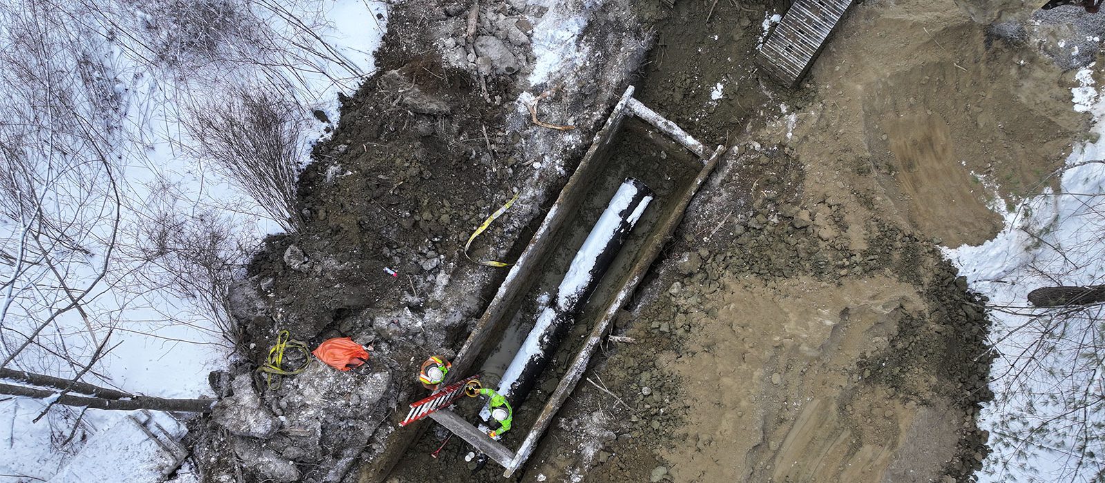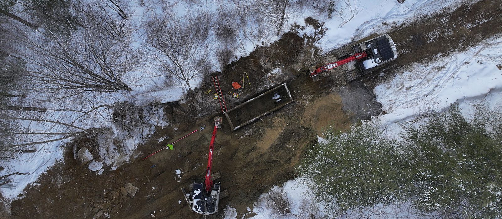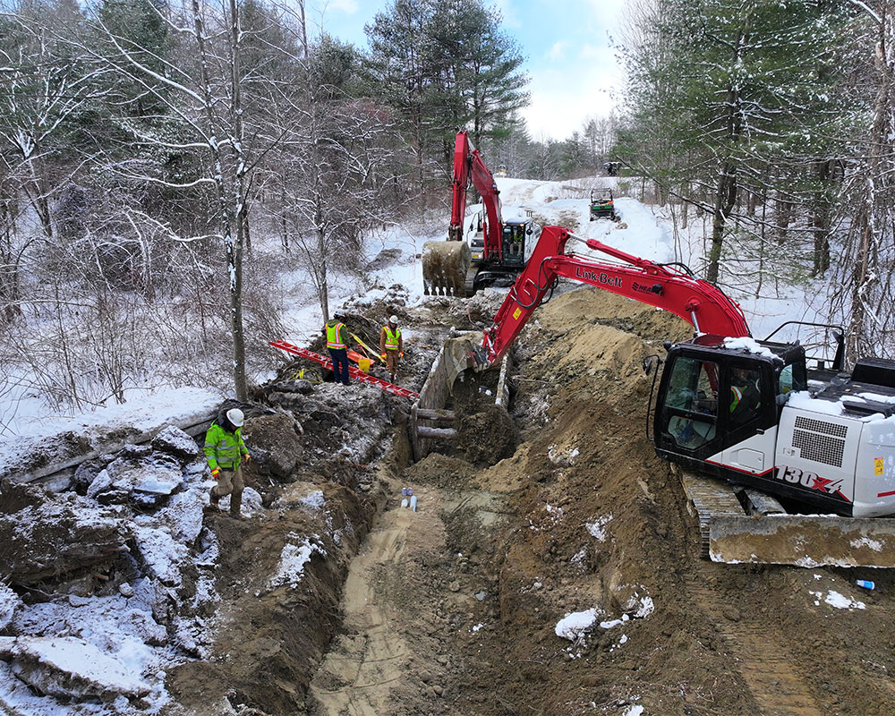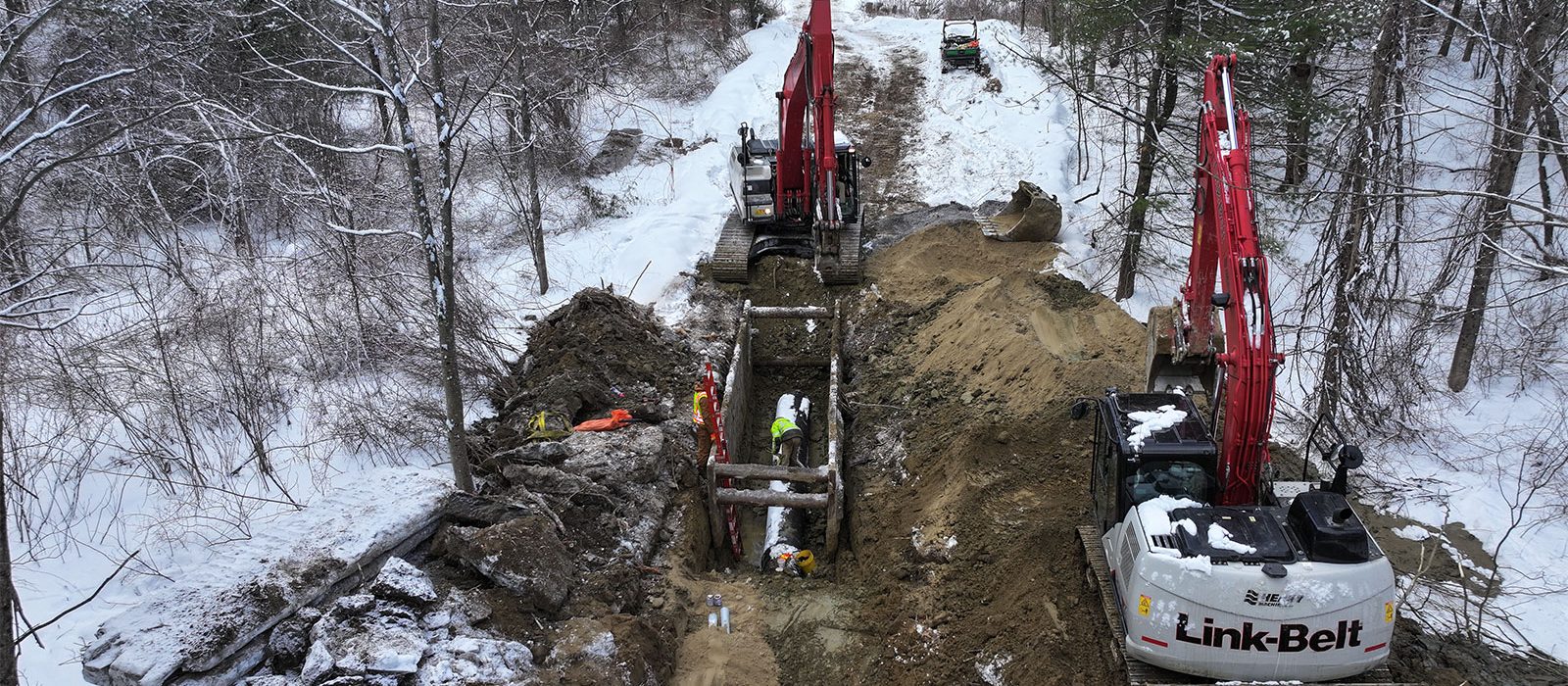Sargent crews completed several water-related projects in the Lewiston-Auburn area in 2025, including a $5.5 million second phase of a water main installation for the City of Lewiston, which will bring a new, redundant 24-inch ductile iron water line from North River Road to the Turner Street Facility in Auburn. Concurrently, Sargent is replacing a box culvert on Stetson Road in Auburn for $600,000, and in Lewiston, they are replacing the Robinson Gardens culvert for $1.5 million and continuing work on a 2.1 million gallon combined sewer overflow (CSO) storage tank at the Lewiston Auburn Clean Water Authority Wastewater Treatment Plant, a multi-year project designed to prevent untreated wastewater discharge into the Androscoggin River during high flow events. The water main project, which faced challenges with ledge removal, was expanded to include an additional 2,445 feet of pipe installation to expedite work ahead of planned state repaving.