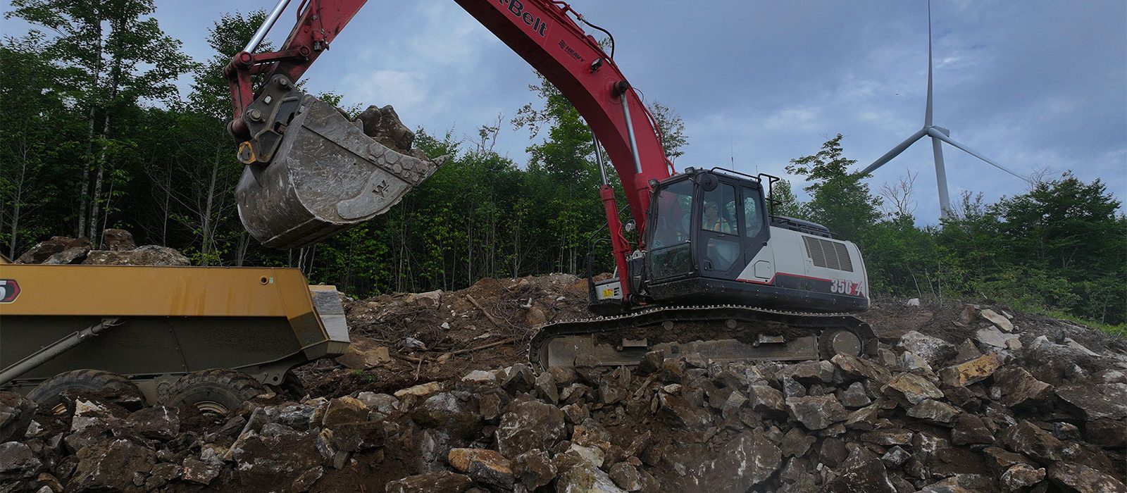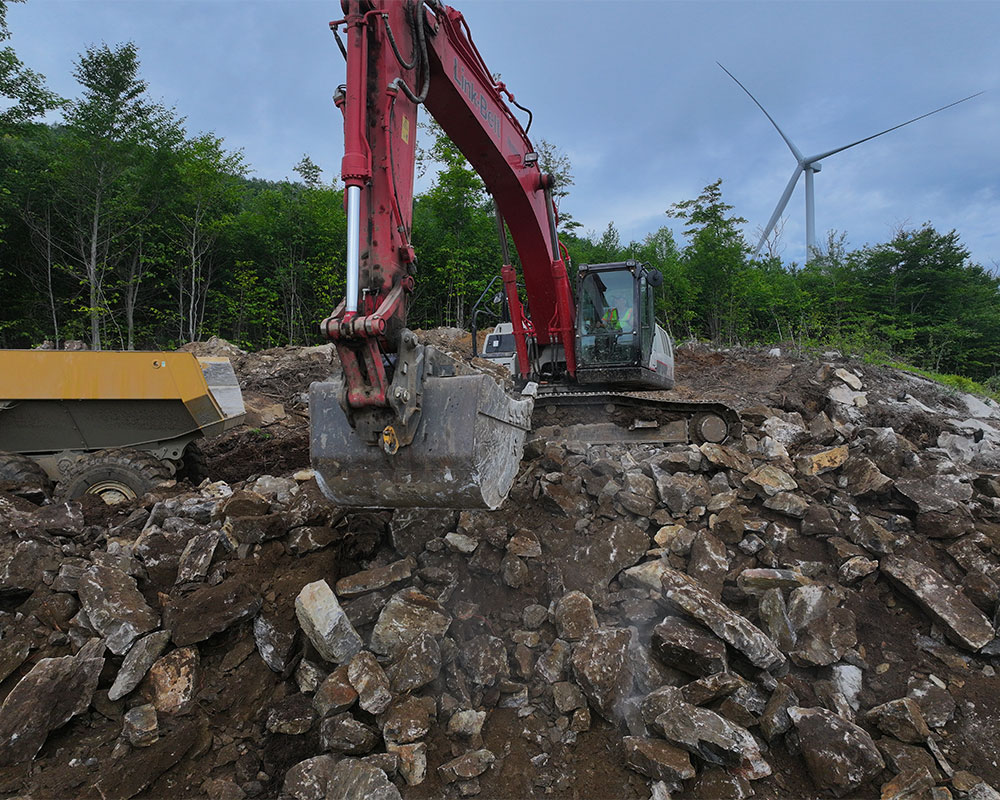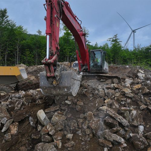 Sargent has commenced site work for the three-turbine, 18.3-megawatt Twin Energy Wind facility on South Twin Mountain in Rumford, Maine, following a similar project nearby, with Reed & Reed as the general contractor. The project, which was estimated to start in summer 2024 and cost $32.5 million, involves developing 38 acres of a larger parcel and features turbines with a 643-foot tip height. Sargent’s contract includes creating a new 24-foot-wide road connecting North Twin and South Twin mountains, building five stream crossings with bridges, and constructing roads using 80,000 cubic yards of blasted rock, with the crane path being widened to 40 feet in some areas, as well as building 120-foot by 70-foot crane pads. Site clearing began in April, with drilling and blasting starting in June, and the company aims for full access to tower pads by mid-October, with restoration of access roads and green space targeted for mid-summer after the large turbines are erected.